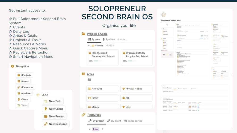 Never lose track again with the solopreneur's second brain.Organize and manage your life and business with
