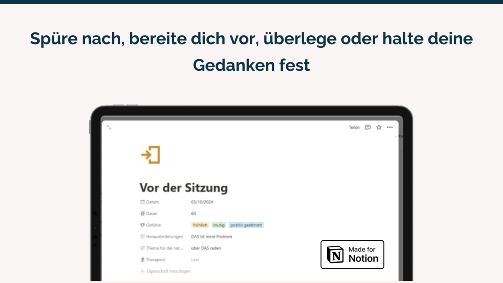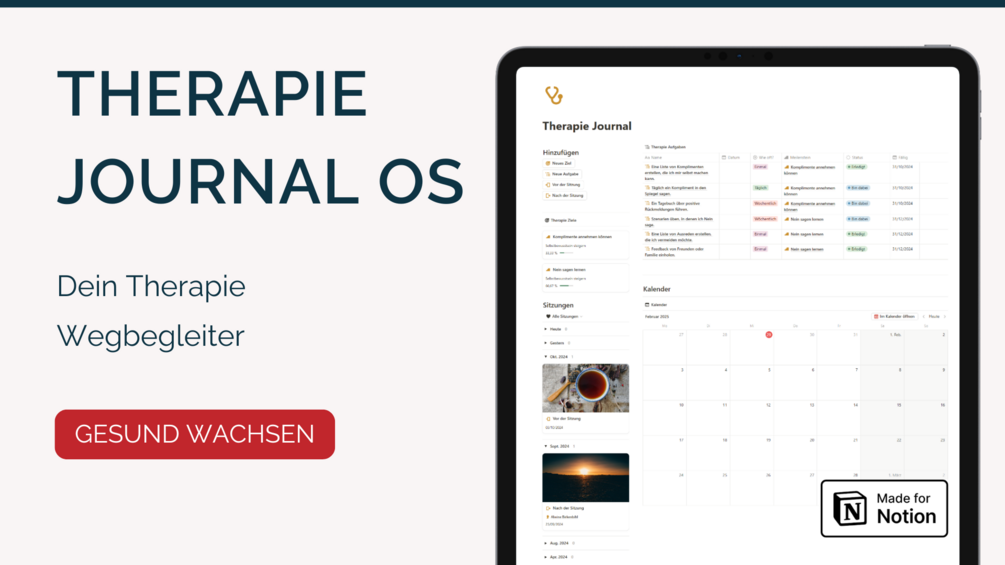 Das Therapie Journal kannst du direkt in Notion nutzen oder ausdrucken und handschriftlich ausfüllen – so, wie es für dich am besten passt.